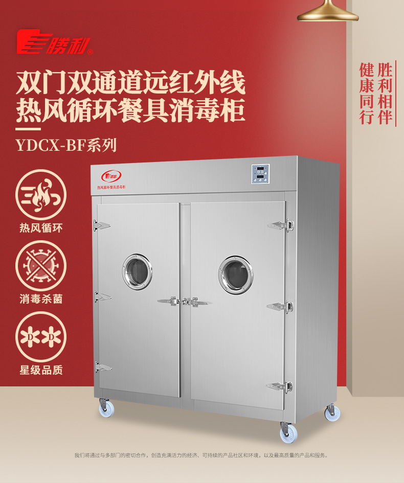 廠家新款火太陽遠紅外線不銹鋼餐具雙門消毒柜適用學校單位食堂